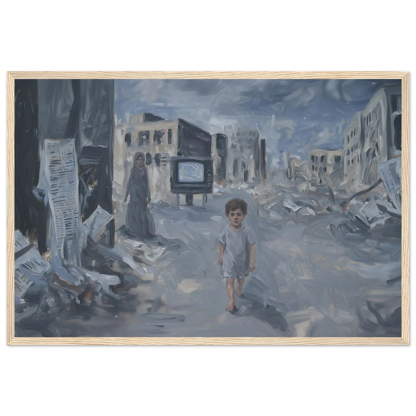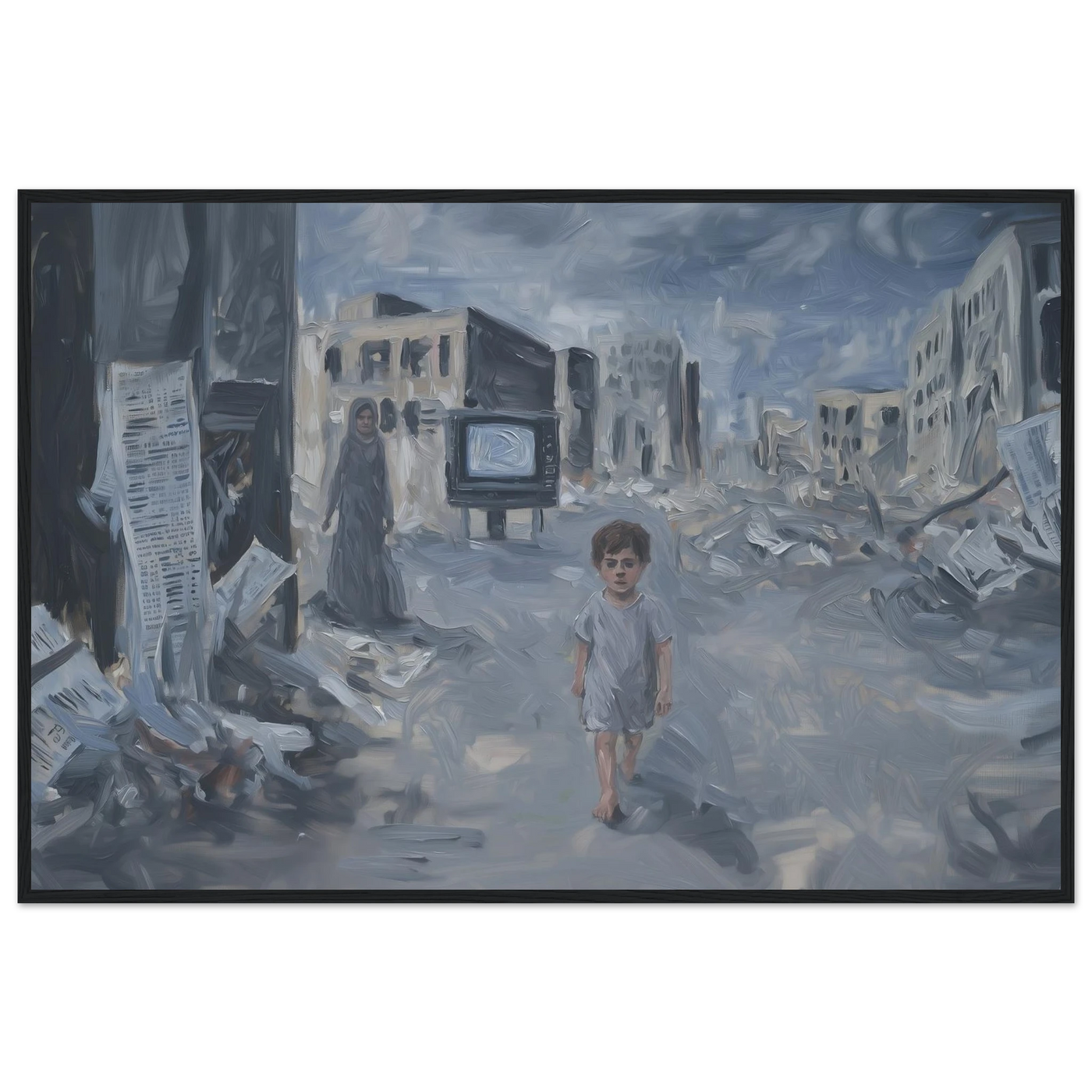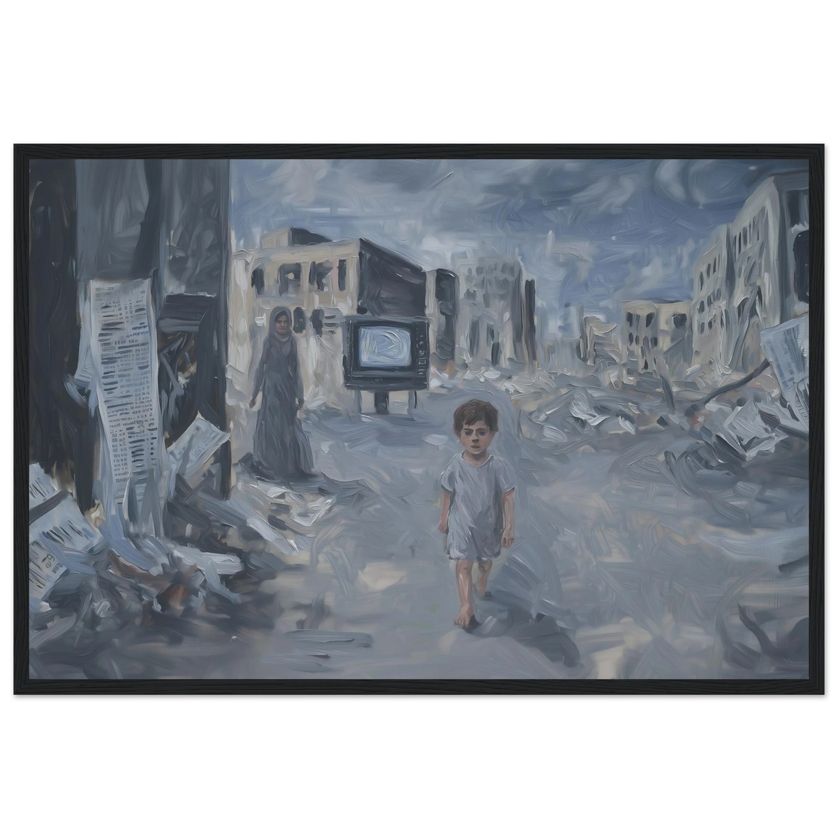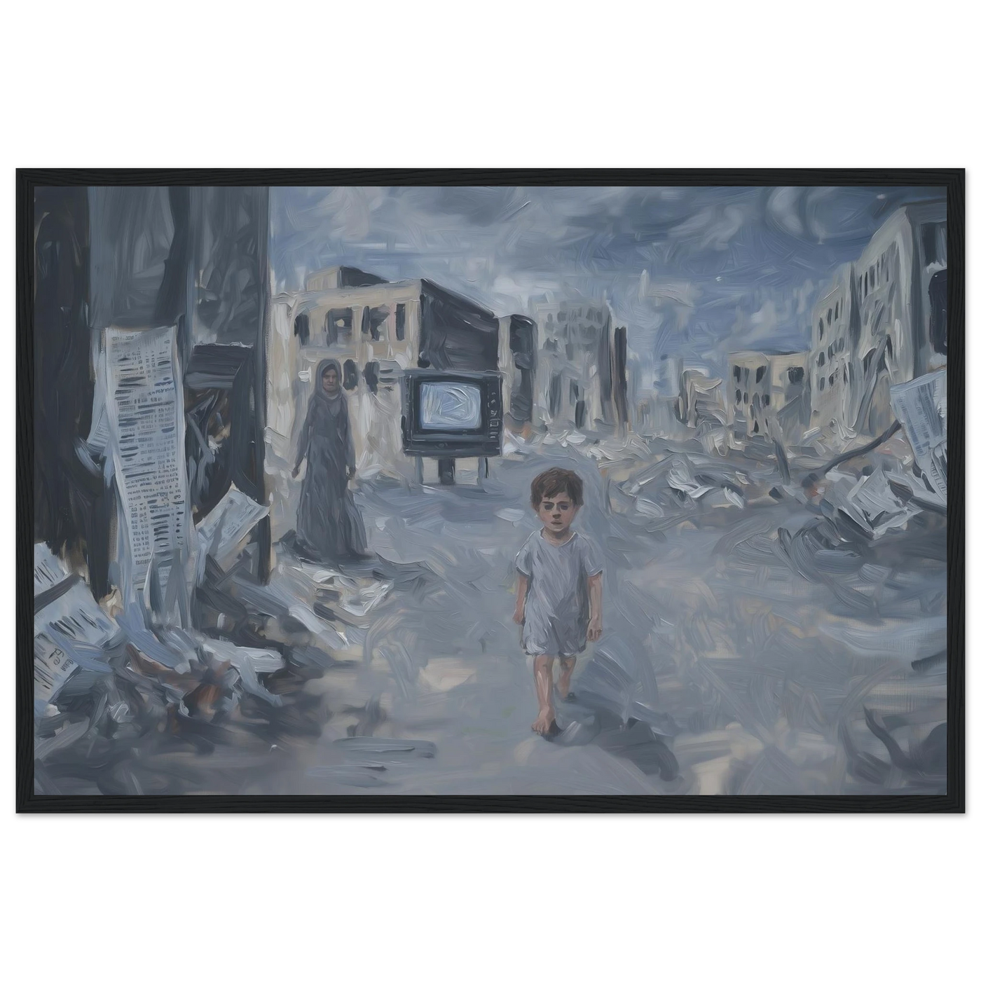 In the Shadow of Our Silence – Gaza’s Cry | Framed Art Print - 40x60 cm / 16x24″ / Black frame