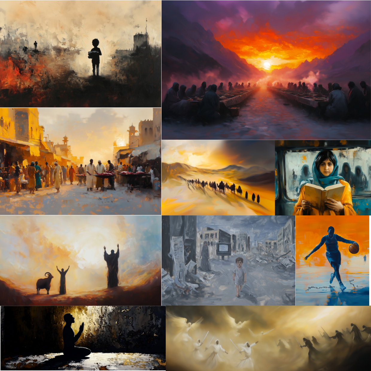 Inspired by Islamic history and human resilience, these works remind hearts of divine light, courage, and mercy — echoing timeless truths through art.